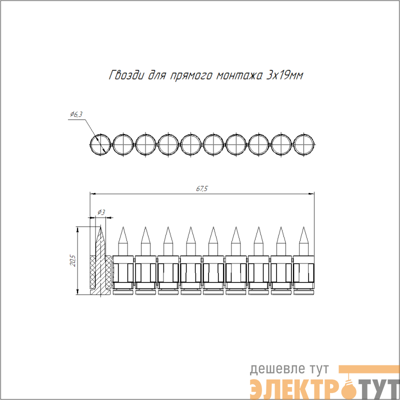 PR08.5806 | Гвоздь кованый для прямого монтажа 3х19 (уп.1000шт) Промрукав