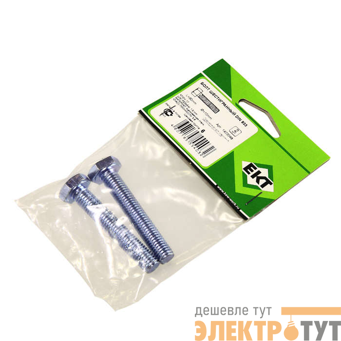 1403043 | Болт с шестигранной головкой М10х40 DIN 933 полная резьба оцинк. пакет (уп.2шт) EKT