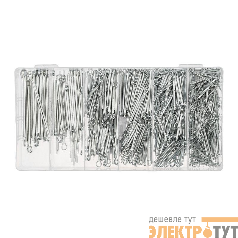 Набор состоит из 555 шплинтов, которых хватит для выполнения множества задач. Поставляется в пластиковом органайзере, который помогает не только удобно хранить изделия, но и быстро находить крепеж нужного размера. Органайзер может в дальнейшем использоваться для хранения других крепежных элементов.
