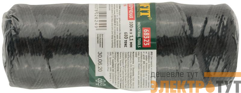 68323 | Нить крученая на катушке 1.1ммх100м 680 текс р/н=35кгс черн. FIT