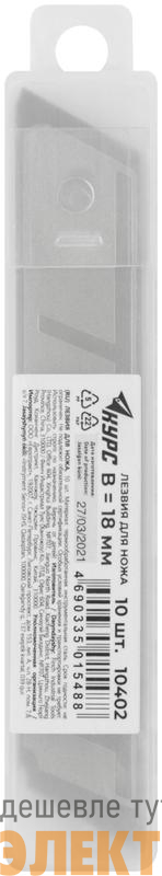 10402 | Лезвие для ножа технического 18мм 8 сегментов (уп.10шт) КУРС