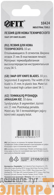 10424 | Набор лезвий для ножа технического 25мм 8 сегментов сталь SK5 (уп.10шт) FIT