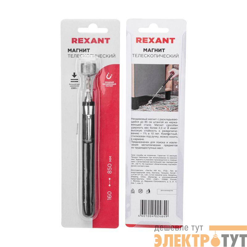 12-4812 | Магнит телескопический 160- 850мм (удержание 2.3кг) Rexant