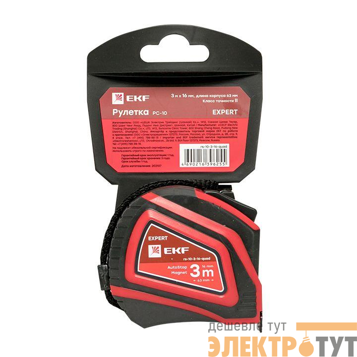 rs-10-3-16-quad | Рулетка измерительная РС-10 (3мх16мм) Autostop магнит Expert EKF