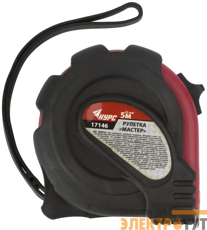 17146 | Рулетка Мастер 5мх25мм прорезиненный корпус КУРС