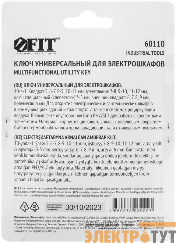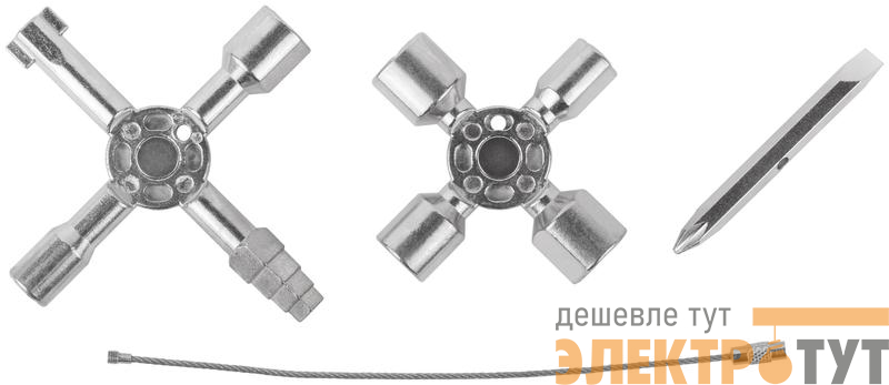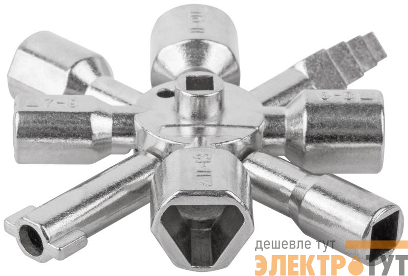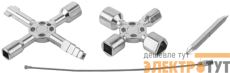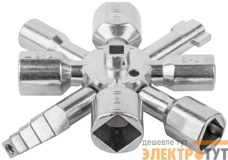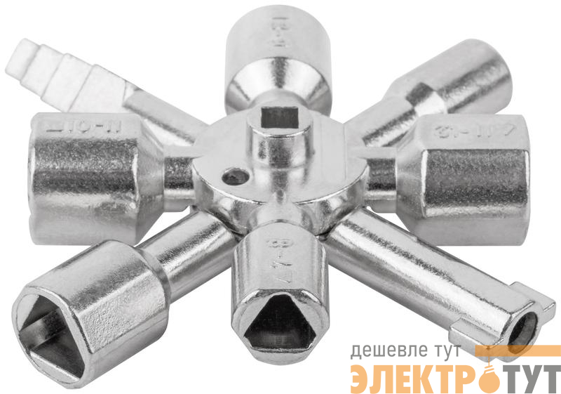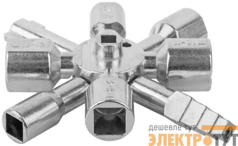 Ключ универсальный для электрошкафов FIT IT 10-в-1 предназначен для открытия электрических и сантехнических шкафов в коммуникациях зданий и транспорта, а также в системах рециркуляции воздуха. Имеет 10 наиболее распространенных форм ключей. Встроенный паз с магнитом позволяет фиксировать биту. Ключ изготовлен из цинкового сплава и обладает длительным сроком службы. Никелевое покрытие предотвращает коррозию. Компактный размер ключа дает возможность носить его в кармане.