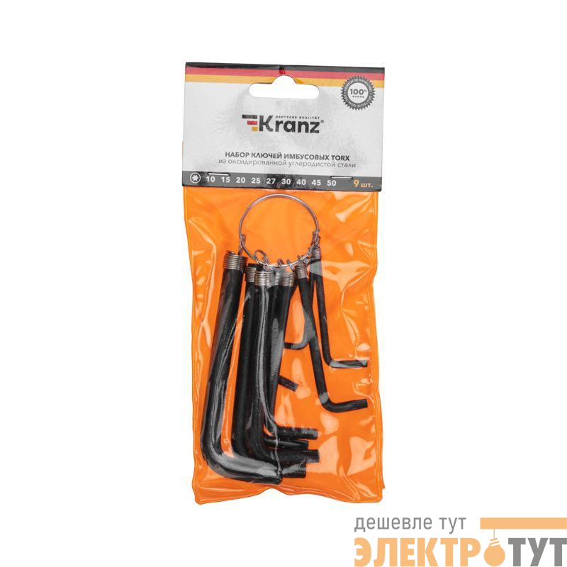 KR-12-5203 | Набор ключей имбусовых TORX T10-T50 CrV 9шт оксидированные на кольце Kranz