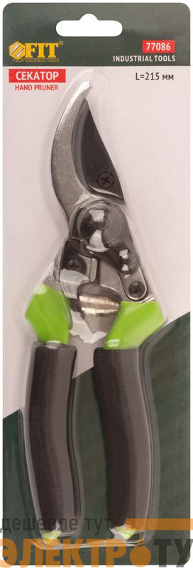 77086 | Секатор режущие кромки внахлест тефлон. покрытие лезвий пластик. ручки с мягкими накладками 215мм FIT