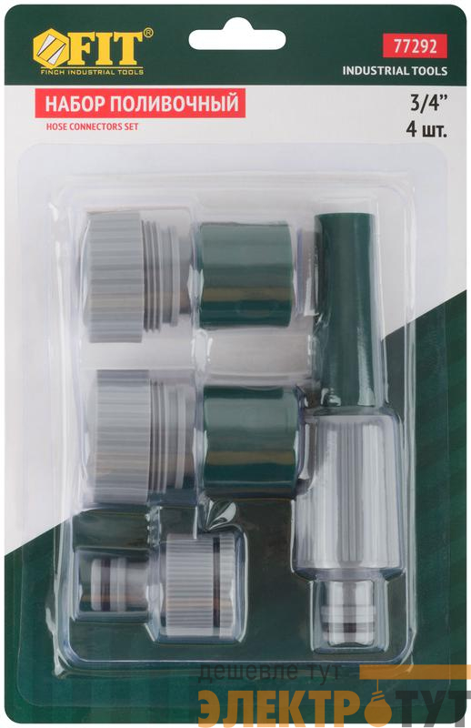 77292 | Набор поливочный 4шт 3/4дюйм ( насадка для полива; соединитель; соединитель с автостопом; адаптер внешний ) FIT