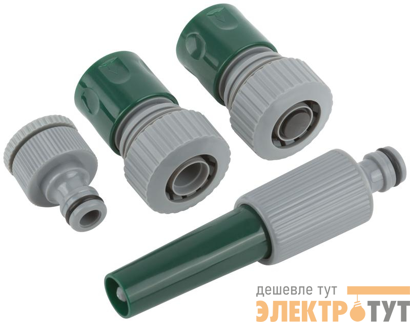 Набор поливочный 4 шт. (насадка для полива, соединитель, соединитель с автостопом, адаптер внешний). Материал: ABS пластик.