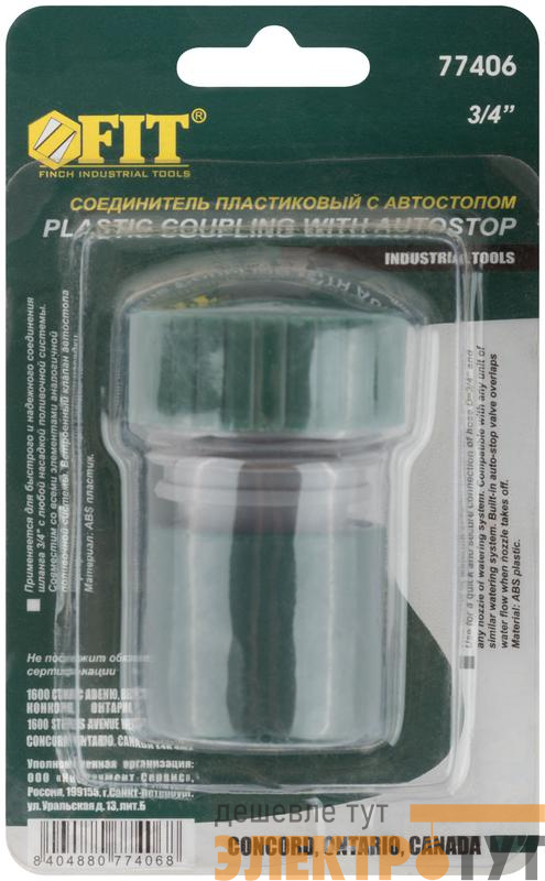 77406 | Соединитель пластиковый 3/4дюйм автостоп FIT