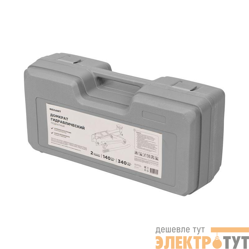 Гидравлический подкатной домкрат REXANT представляет собой устройство с гидравлическим механизмом, предназначенное для поднятия автомобиля на заданную высоту. Отличается плавностью хода, надежностью и жесткостью конструкции. Для удобства хранения и транспортировки поставляется в пластиковом кейсе.