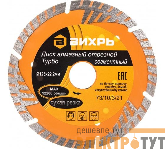 73/10/3/21 | Диск алмазный отрезной Турбо - сегментный 125х22.2мм сухая резка Вихрь