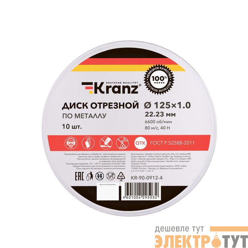 KR-90-0912 | Диск отрезной по металлу 125х1.0х22.23мм Kranz