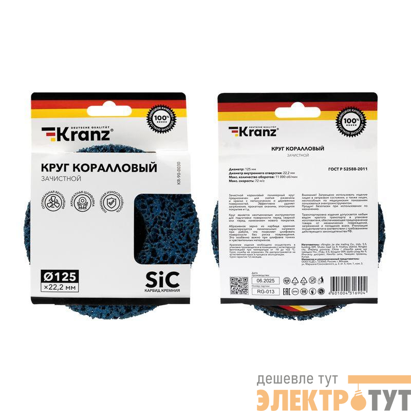 KR-90-0030 | Круг зачистной 125х22.2мм коралл Kranz