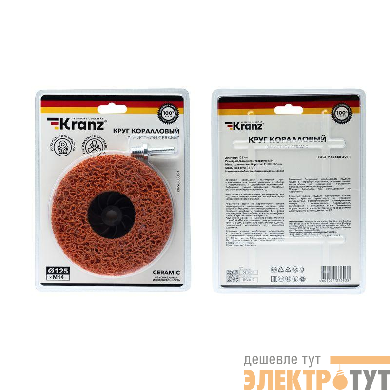 KR-90-0030-1 | Круг зачистной CERAMIC 125хМ14 быстрая уст. адаптер коралл Kranz