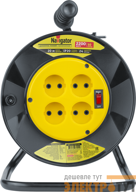 93902 | Удлинитель на катушке 4х20м без заземл. 93 902 NPE-R-04-20-X-2х1 NAVIGATOR