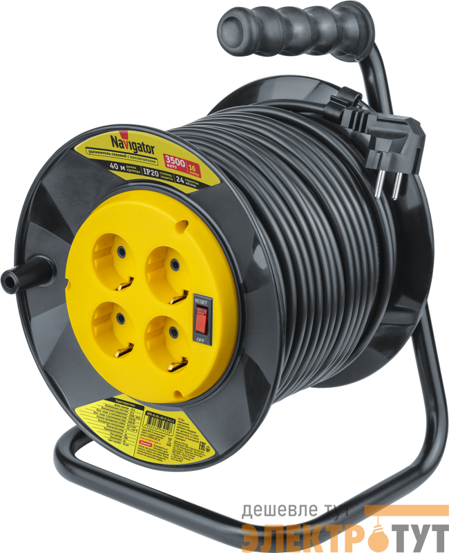 93912 | Удлинитель на катушке 4х40м с заземл. 93 912 NPE-R-04-40-E-3х1.5 NAVIGATOR