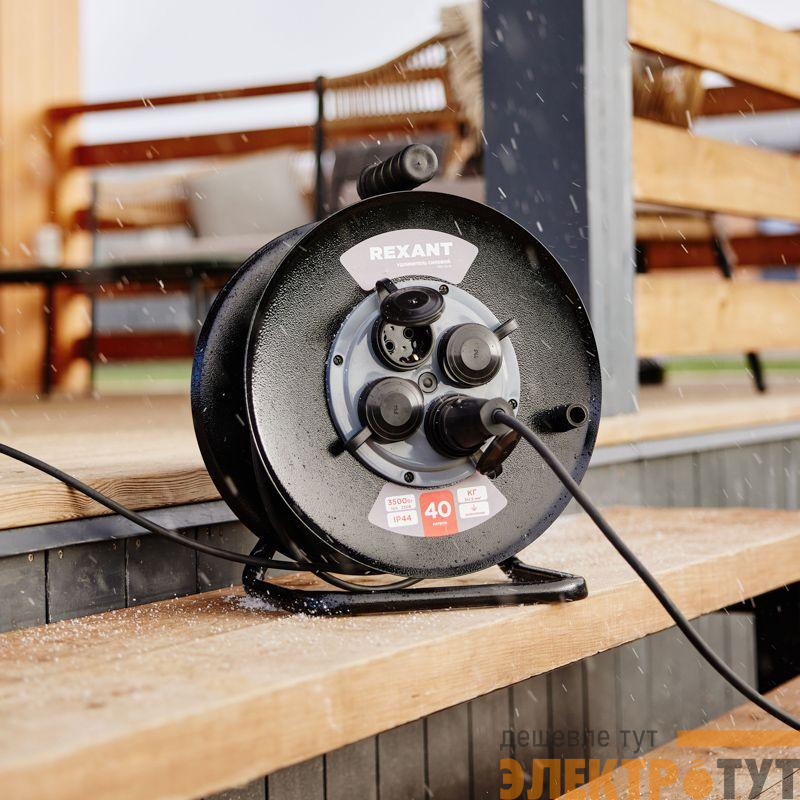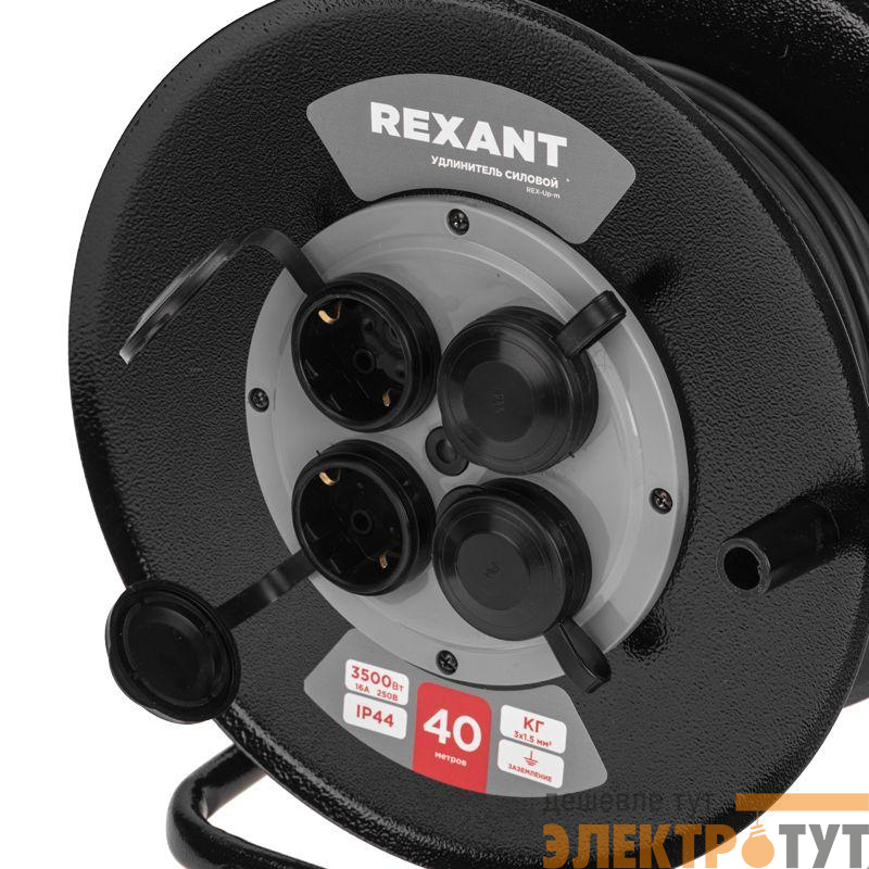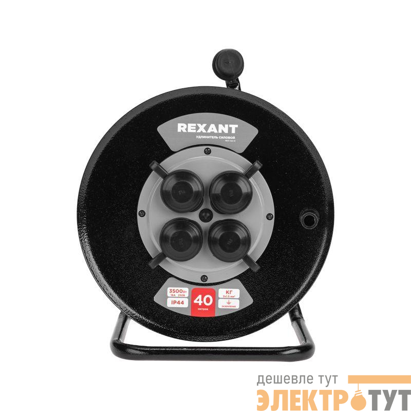 13-5012 | Удлинитель на метал. катушке 4х40 с заземл. IP44 КГ 3х1.5 c защ. крышкой Rexant