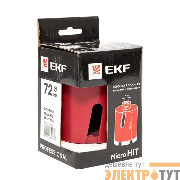 dch-72-mh-m16 | Коронка алмазная для дрелей с микроударом DCH-72MH Micro Hit Laser M16 Professional EKF