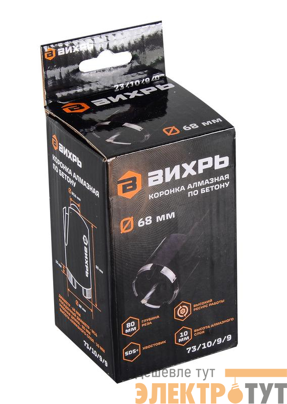 73/10/9/9 | Коронка алмазная по бетону 68мм SDS-Plus Вихрь