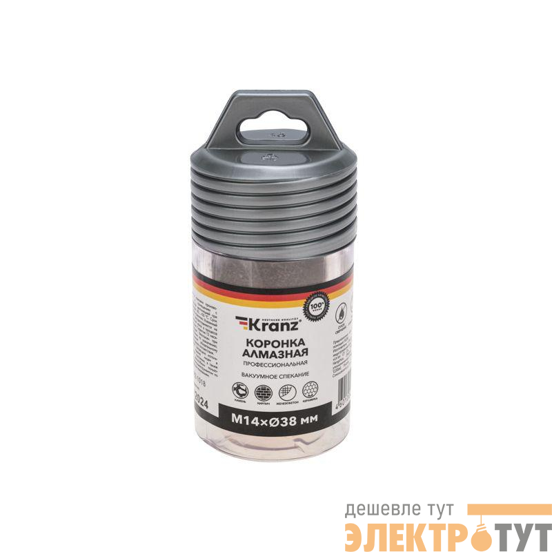 KR-92-1018 | Коронка алмазная профессиональная по керамограниту и железобетону М14 вакуумное спекание 38мм для УШМ Kranz