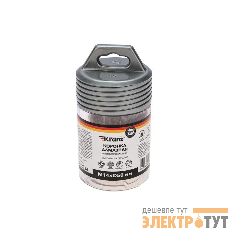 KR-92-1021 | Коронка алмазная профессиональная по керамограниту и железобетону М14 вакуумное спекание 50мм для УШМ Kranz