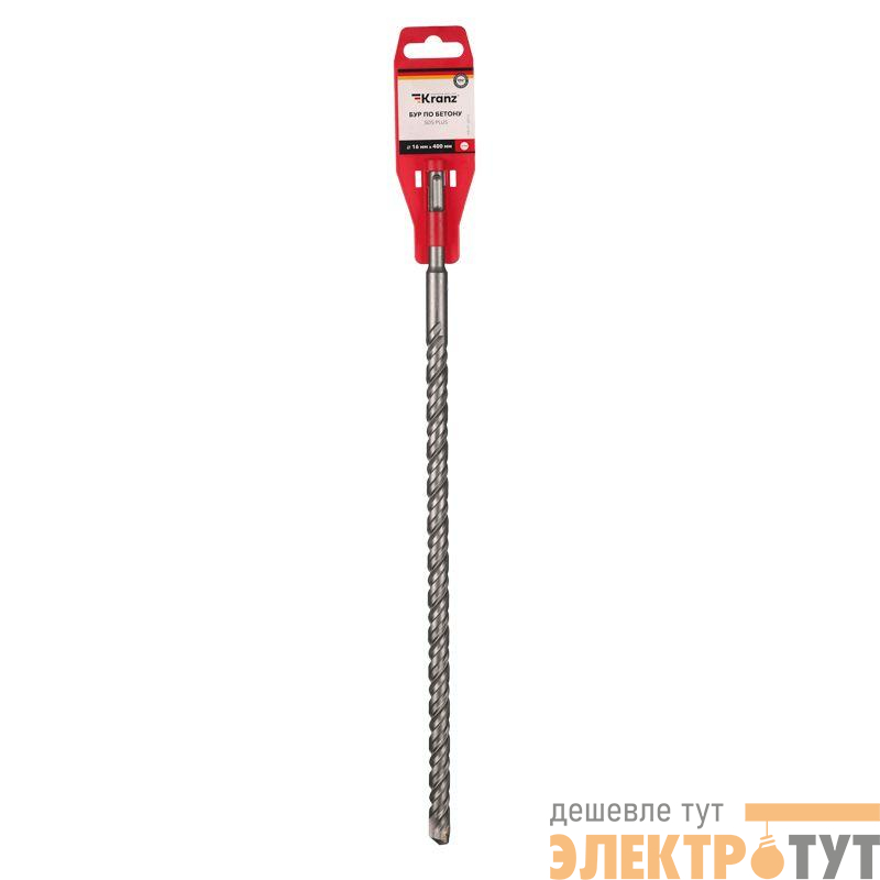 Бур по бетону с хвостовиком SDS PLUS 16x400 мм KRANZ используется во время строительных и ремонтных работ. Предназначен для сверления и бурения отверстий в слабоармированном бетоне, граните, кирпичной кладке и камне при помощи перфоратора с креплением SDS PLUS, которое используется в большинстве электроинструментов бытового и профессионального назначения. Изделие выполнено из качественной стали, что обеспечивает долгий ресурс работы и высокую производительность. Конструкция со стабилизирующей спиралью сохраняет точное положение бура во время сверления и равномерно распределяет ударную нагрузку, кромки с 2 гранями обеспечивают легкое выведение шлама и мелких частиц пыли из рабочей зоны, что поддерживает скорость работы, а усиленный резец предотвращает заклинивание оснастки в арматуре. Твердосплавная вставка на конце бура способствует эффективному входу в материал, что увеличивает цикл службы оснастки и уменьшает износ сверла.