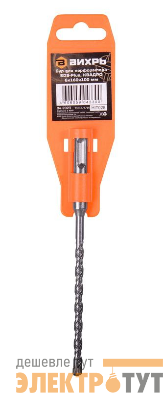 73/10/7/15 | Бур по бетону КВАДРО 6х160х100 SDS-Plus Вихрь