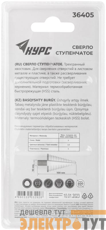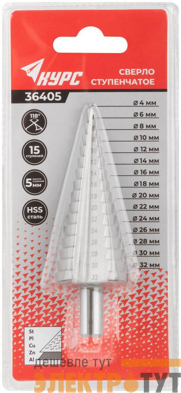 36405 | Сверло по металлу ступенчатое 4-32мм 15 ступеней HSS КУРС