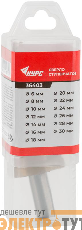 36403 | Сверло по металлу ступенчатое 6-30мм 13 ступеней HSS КУРС