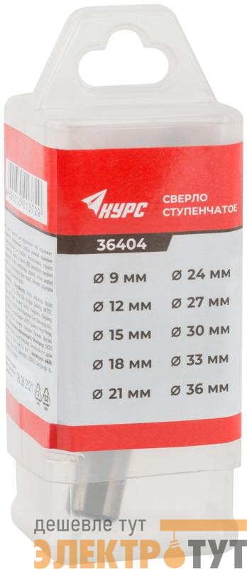 36404 | Сверло по металлу ступенчатое 9-36мм 9 ступеней HSS КУРС