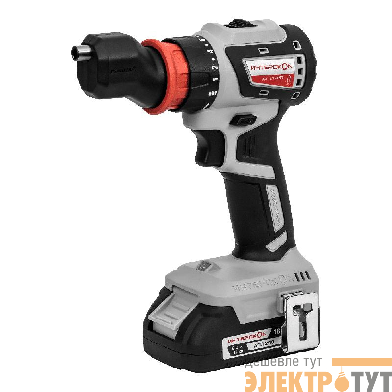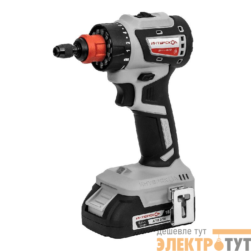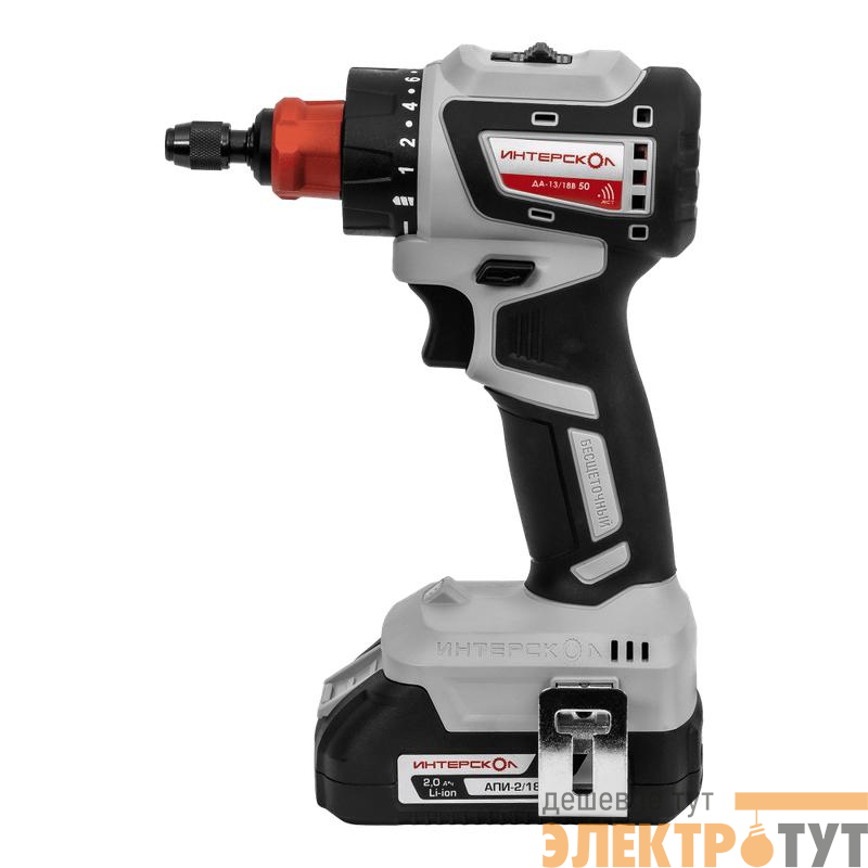 776.2.2.79 | Дрель-шуруповерт аккумуляторная бесщеточн. ДА-13/18В 50 комби АПИ (Li-ion кейс 2 аккум. 2А.ч 4 насадки) ИНТЕРСКОЛ