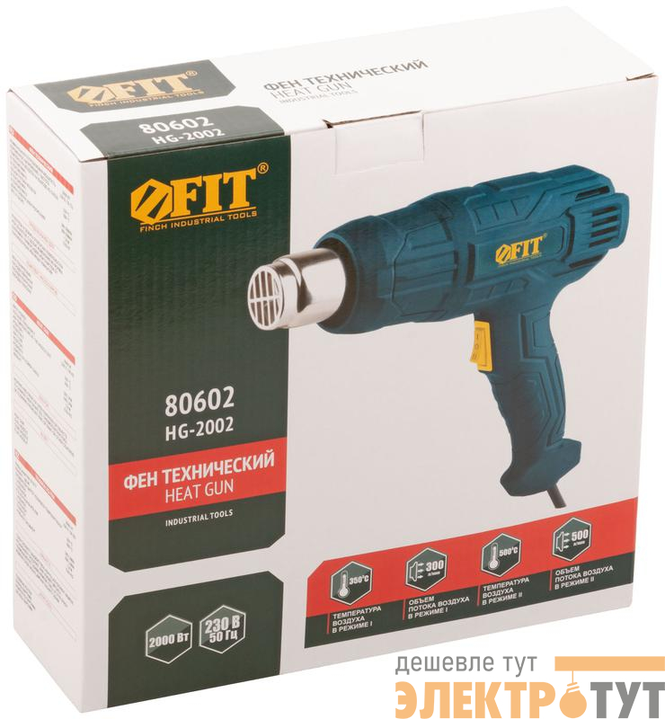 80602 | Фен технический 2000Вт 350/500град. 300/500л/мин FIT