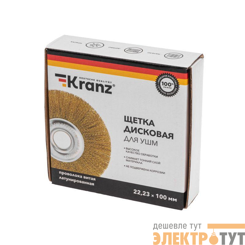 KR-91-1241 | Щетка дисковая для УШМ витая латунированная проволока 100мм отв. 22.23мм Kranz
