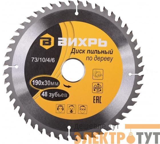 73/10/4/6 | Диск пильный по дереву 190х30мм 48 зубьев Вихрь