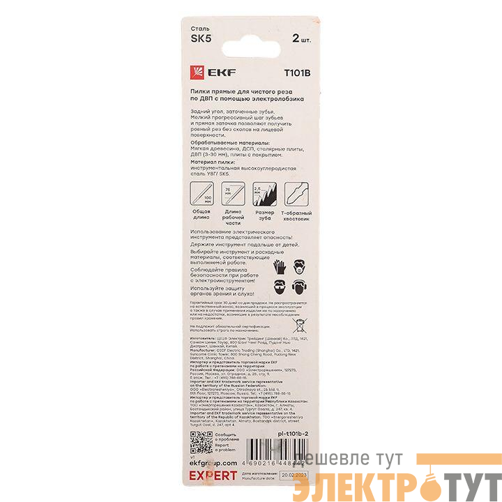 pl-t101b-2 | Пилка для электролобзика прямые T101B (чистовой рез по ДВП)(SK5) (уп.2шт) Expert EKF