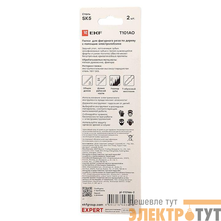 pl-t101ao-2 | Пилка для электролобзика T101AO (фигурный рез по дереву)(SK5) (уп.2шт) Expert EKF