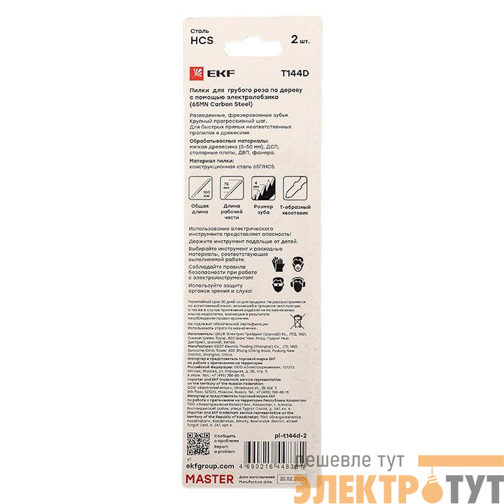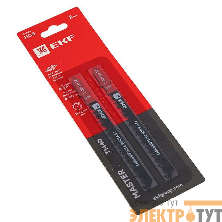 pl-t144d-2 | Пилка для электролобзика T144D (грубый рез по дереву и ДВП)(HCS) (уп.2шт) Master EKF