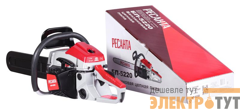 В бензопиле Ресанта БП-5220 установлен мощный двухтактный бензиновый мотор на 3,8 л.с.. Для заправки используется смесь бензина с моторным маслом 2Т. Пропорции смотрите на упаковке масла.