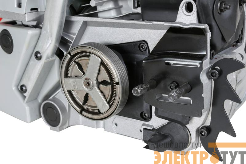 Модель получила удобный доступ ко всем узлам, которые нуждаются в периодическом обслуживании: быстросъемная крышка воздушного фильтра, регулировка натяжения цепи на боковой крышке. Предусмотрен топливный насос с ручной закачкой бензина в карбюратор, предназначенный для холодного запуска пилы. Принудительная смазка цепи продлевает срок службы металлических деталей шины и цепи. Долговечность изделию добавляет поршневая группа с хромовым покрытием.