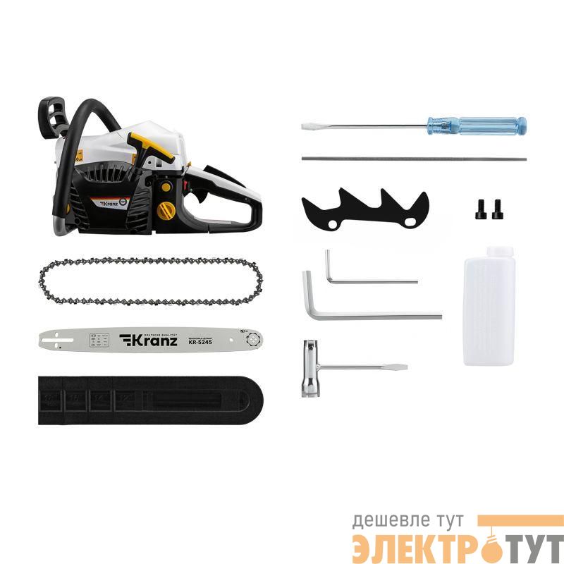 KR-16-1182 | Пила цепная бензиновая KR-5245 шина 45см 3.5 л.с шаг 0.325 72 звена Kranz