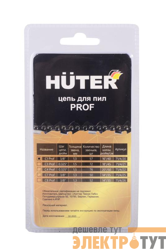 71/4/20 | Цепь C1 Prof/57 Huter (16дюйм-3/8-1.3-57 для BS-40 BS-45M ELS-2000 ELS-2000Р ELS-2200Р) HUTER