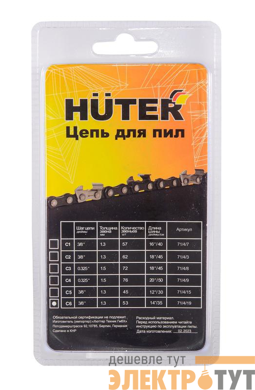 71/4/19 | Цепь C6 Huter (14дюйм-3/8-1.3-53 для ELS-1800P) HUTER
