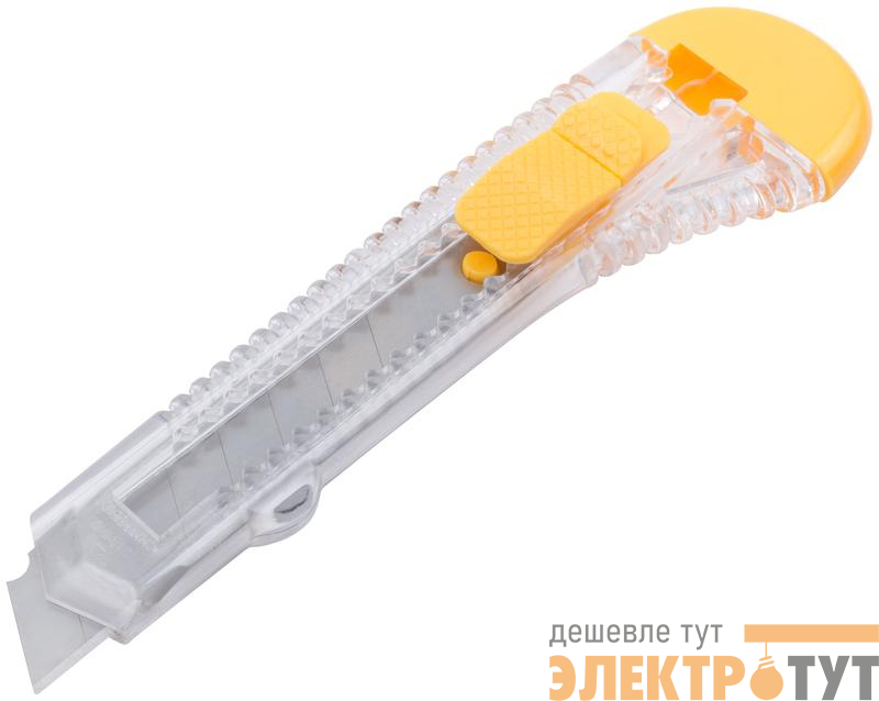 Применяется для резки бумаги, обоев,скотча, картона средней твердости. Лезвие выполнено из износостойкого металла,гарантируется устойчивость во время работы. Рифленая форма ножа обеспечивает крепкий захват и предотвращает выскальзывание при использовании. Компактный корпус изготовлен из пластика, удобен в использовании и занимает минимальное место.