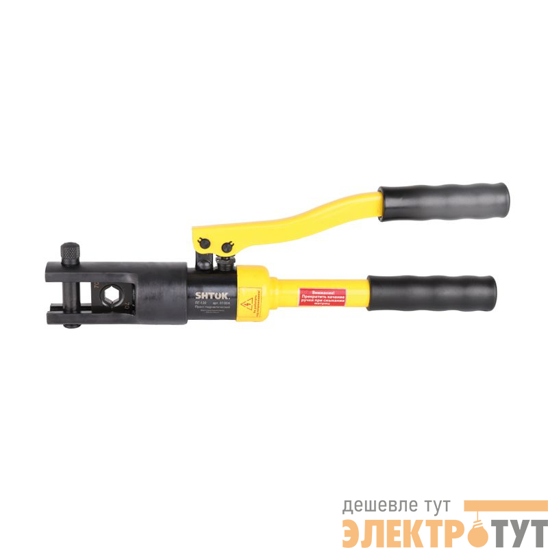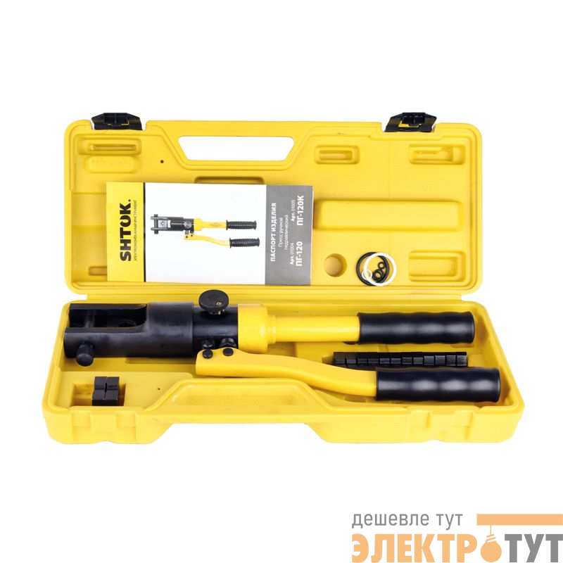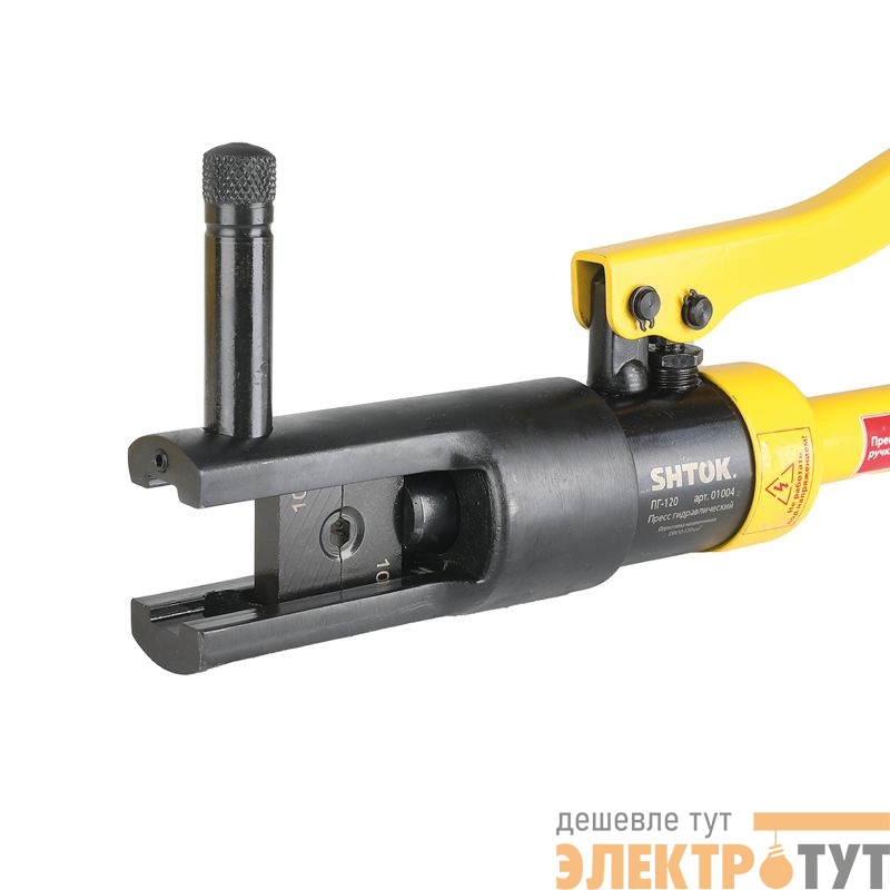Ручной гидравлический пресс SHTOK ПГ-120 01004 предназначен для опрессовки медных и алюминиевых наконечников сечением от 10 до 120 мм2.