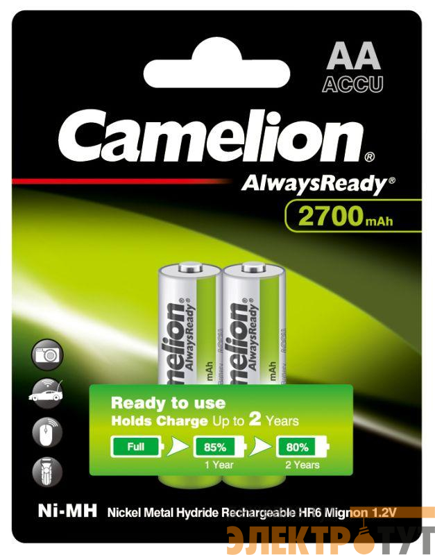 15036 | Аккумулятор Always Ready AA-2700mAh Ni-Mh BL-2 NH-AA2700BP2 1.2В Camelion