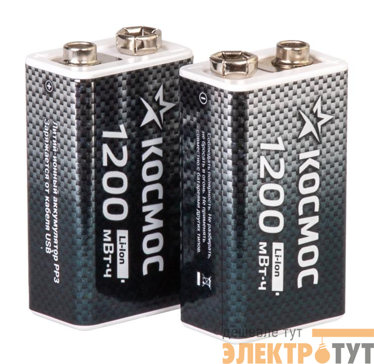 KOCLi9V1200mAh1BL | Аккумулятор крона Li-ion 9В 1200мАч (блист.1шт) КОСМОС