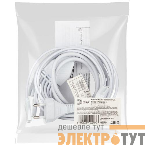 Б0060525 | Разветвитель сетевой для фитолампы FITO 5х IEC C7 (2 pin) 2 м для подключения 5 светильников Эра