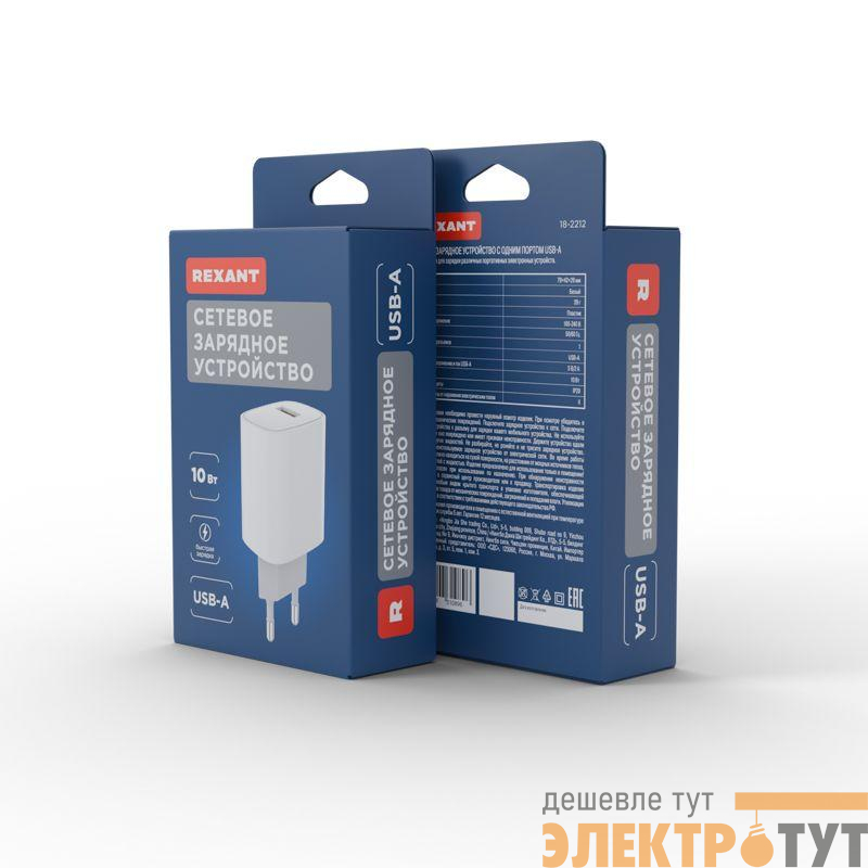 18-2212 | Устройство зарядное сетевое с одним портом USB-A 10Вт Rexant